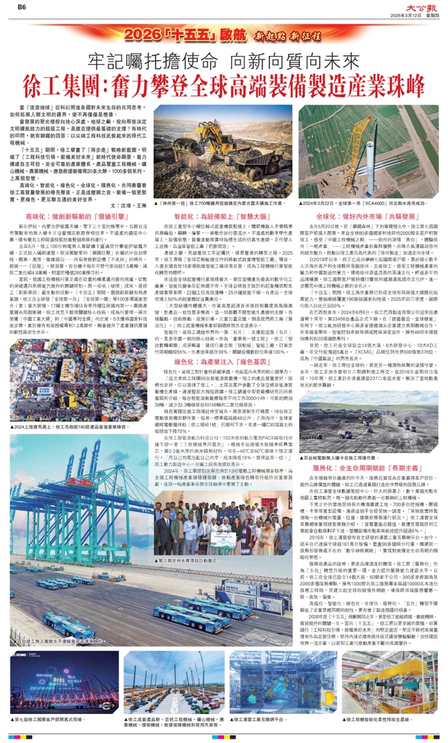 2026年是“十五五”規(guī)劃開局之年,更是徐工能級(jí)跨越、動(dòng)能轉(zhuǎn)換、質(zhì)效提升的關(guān)鍵一年。面向“十五五”,徐工將以更卓越的裝備,切實(shí)踐行“工程科技引領(lǐng),裝備美好未來”的堅(jiān)定諾言,堅(jiān)定不移把高質(zhì)量增長作為首要任務(wù),堅(jiān)持內(nèi)涵式增長與外延式擴(kuò)張雙輪驅(qū)動(dòng),加快建設(shè)世界一流企業(yè),以新型工業(yè)化推動(dòng)產(chǎn)業(yè)不斷向高處攀升。