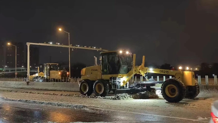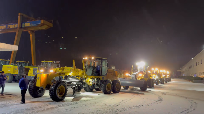 徐工平地機加滿油箱,列隊集合、整裝待發(fā),全力以赴投入到破冰除雪,為道路暢通和行車安全保駕護(hù)航。徐工的機手們更是發(fā)揮了徐工人無畏艱苦、敢于奉獻(xiàn)的精神,以高度的責(zé)任感和使命感,堅守在除雪一線,保障市民的安全出行。冰雪紛飛的夜幕下,徐工平地機的燈光照亮了歸家人的路。