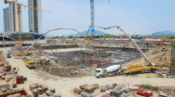 據(jù)了解,橫琴科學(xué)城(一期)是全國最大的EPC房建項目,涵蓋31棟建筑,用地面積約32.2萬平方米,總建筑面積高達(dá)116萬平方米。而此次施工更是需要一次性澆筑5000方C35標(biāo)號混凝土,這無疑是一場對設(shè)備性能與施工團(tuán)隊能力的嚴(yán)峻考驗。