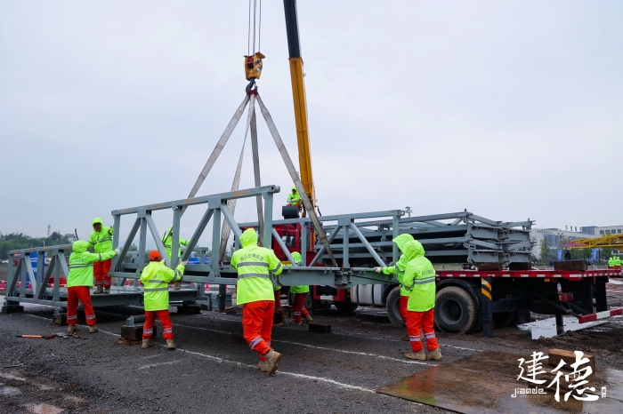 本次演練以山洪爆發(fā)、泥石流、臺風(fēng)等極端氣候造成的道路內(nèi)澇深坑積水、道路大面積塌方、公路橋梁沖毀以及?;愤\輸車泄漏等特殊情況為背景,模擬公路水毀阻塞交通、橋梁垮塌中斷交通,演練隊伍嚴正執(zhí)行,在規(guī)定時限內(nèi)迅速完成桁架拼裝、橋面鋪設(shè)、橋梁落座,完成公路應(yīng)急裝備漕渡任務(wù)。