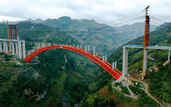 “這座橋工期緊,技術(shù)難度大,吊裝過程中構(gòu)件結(jié)構(gòu)重、空間姿態(tài)調(diào)整難度高,給項(xiàng)目施工帶來了一定困難?!卑姿犹卮髽蝽?xiàng)目的鋼結(jié)構(gòu)負(fù)責(zé)人毛宗宇說。白水河特大橋主橋采用跨徑340m的上承式鋼管混凝土變截面桁架拱橋,全橋共設(shè)計(jì)58個吊裝節(jié)段,在百米高空中完成拼裝,而誤差要保持在毫米級,這些為塔機(jī)施工帶來了高難度挑戰(zhàn)。