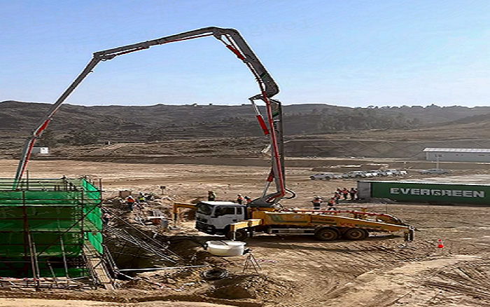 此次工程不僅面臨施工設(shè)備和材料供應(yīng)奇缺等難題,且厄籍職工沒有大型混凝土澆筑經(jīng)驗(yàn),加之項(xiàng)目澆筑需要長(zhǎng)時(shí)間、大方量的持續(xù)性作業(yè),施工困難重重。徐工HB43V泵車和徐工攪拌車協(xié)力共進(jìn),完美應(yīng)對(duì)此次澆筑任務(wù)。