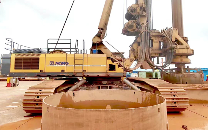 在深水基礎施工中,徐工采用創(chuàng)新的鋼護筒加超大旋挖鉆施工方法,確保一次性成孔,大大提升了施工效率。