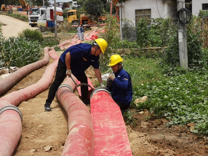 面對嚴(yán)峻的救援形勢,7月12日到達(dá)現(xiàn)場后,救援隊(duì)伍便緊鑼密鼓開始整備,商議排水方案、調(diào)試車輛、鋪設(shè)水帶、檢查管路……為搶抓救援時(shí)間,在制定了嚴(yán)謹(jǐn)細(xì)致的排水方案后,現(xiàn)場采用“兩班倒”的方式,在近40℃的高溫下24小時(shí)不停機(jī)作業(yè)。
