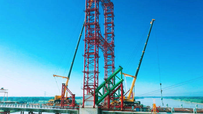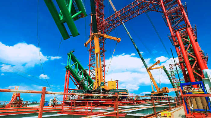 據(jù)悉,拱肋要經(jīng)過200余次吊裝拼接,才能在橋上形成一個完整的拱圈,這三臺徐工超級起重機XCA500將在項目駐守一年。項目建成后,該黃河大橋?qū)⒊蔀閲鴥?nèi)規(guī)模最大的下承式鋼管混凝土系桿拱橋,對改善區(qū)域交通條件,推動黃河流域高質(zhì)量發(fā)展具有重要意義。