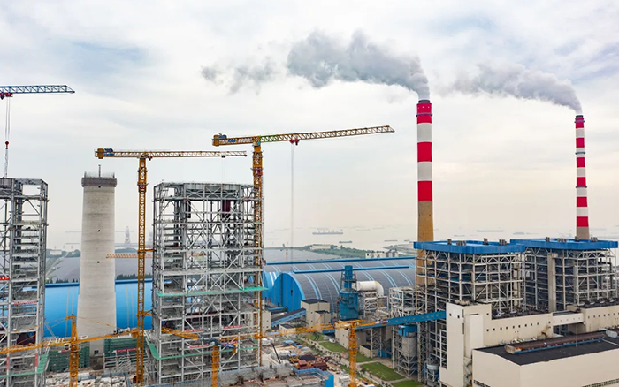 側(cè)望長(zhǎng)江畔,機(jī)器轟鳴、江水潺潺,華能太倉(cāng)電廠機(jī)組擴(kuò)建項(xiàng)目施工現(xiàn)場(chǎng)一派繁忙景象,XGT3100-160S、XGT1350-64S兩臺(tái)徐工超大塔穩(wěn)穩(wěn)矗立在高聳的鋼架間吊裝作業(yè)。