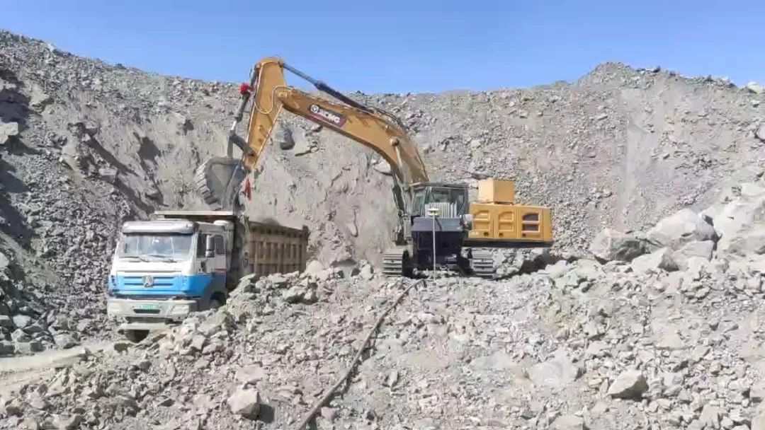 在內(nèi)蒙古某鐵礦施工現(xiàn)場,機器轟鳴聲回繞于空闊寂寥的山巔。徐工XE600EK正揮舞著堅實的臂膀,和寬體自卸車配合默契地忙碌著,一張一弛間彰顯出王者的風(fēng)范。