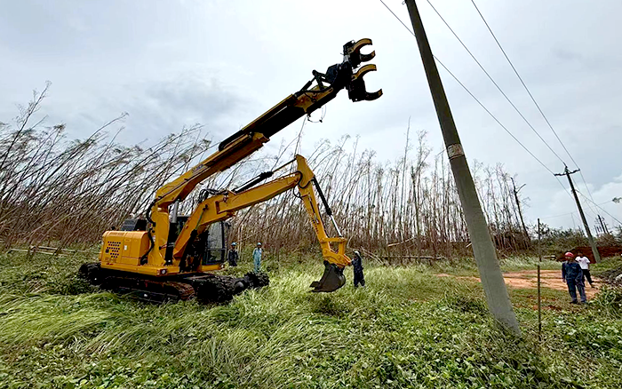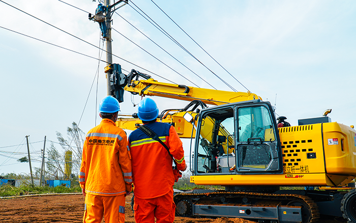 面對秋臺風(fēng)“摩羯”的侵襲,廣東交通運輸部將臺風(fēng)響應(yīng)等級提升至一級。徐工開挖立桿一體機迎“風(fēng)”而上,在廣東緊急開展抗災(zāi)復(fù)電搶修工作,讓原本需要2臺挖機、10多名工作人員齊力拉線的工作變得安全“輕松”,大大降低了災(zāi)后搶修的人身風(fēng)險,保障當(dāng)?shù)鼐用竦碾娏Π踩€(wěn)定供給。