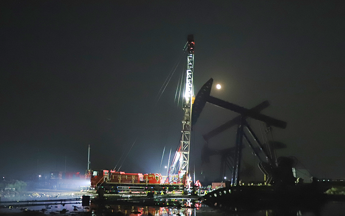 在中國(guó)北部某開(kāi)采油田現(xiàn)場(chǎng),一場(chǎng)“綠色修井”作業(yè)正如火如荼。20余米的井架高聳佇立,井口流出的油水經(jīng)自動(dòng)導(dǎo)流裝置流至集油槽中,點(diǎn)滴不落地。