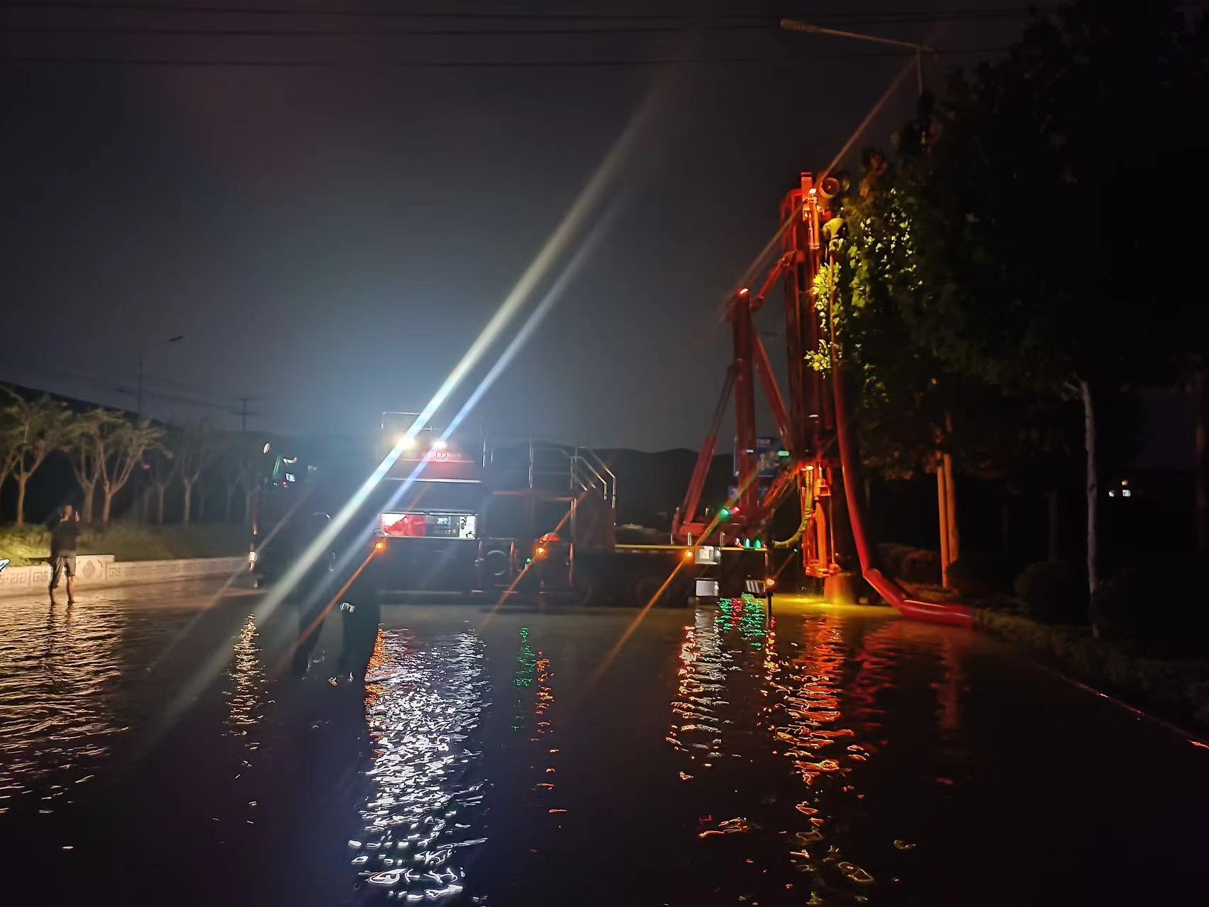 受“貝碧嘉”影響,安徽蕭縣遭遇特大暴雨,防汛形勢(shì)嚴(yán)峻復(fù)雜。9月20日下午6時(shí),接到有關(guān)部門通知,蕭縣縱向1000m、橫向100m的雙向八車道路段龍騰大道汛情嚴(yán)重,積水深度已達(dá)50公分,沒過人員小腿,周邊政府大樓被淹,積水仍在不斷匯入,各方救援力量需緊急前往支援。徐工救援隊(duì)聞令而動(dòng),隨機(jī)出發(fā)前往。