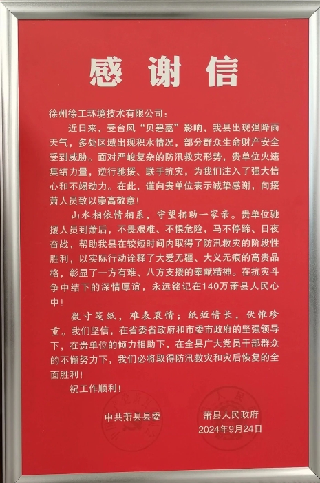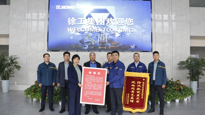 “此行是專門來感謝徐工在蕭縣防汛救災中的無私奉獻?!?/strong>董局長表示,“你們的行動不僅體現了徐工的社會責任感,更讓我們感受到了‘防汛救災顯大愛 風雨同舟見真情’的深刻內涵。我們特地做了錦旗和感謝信,來表達我們的謝意?!?/span>