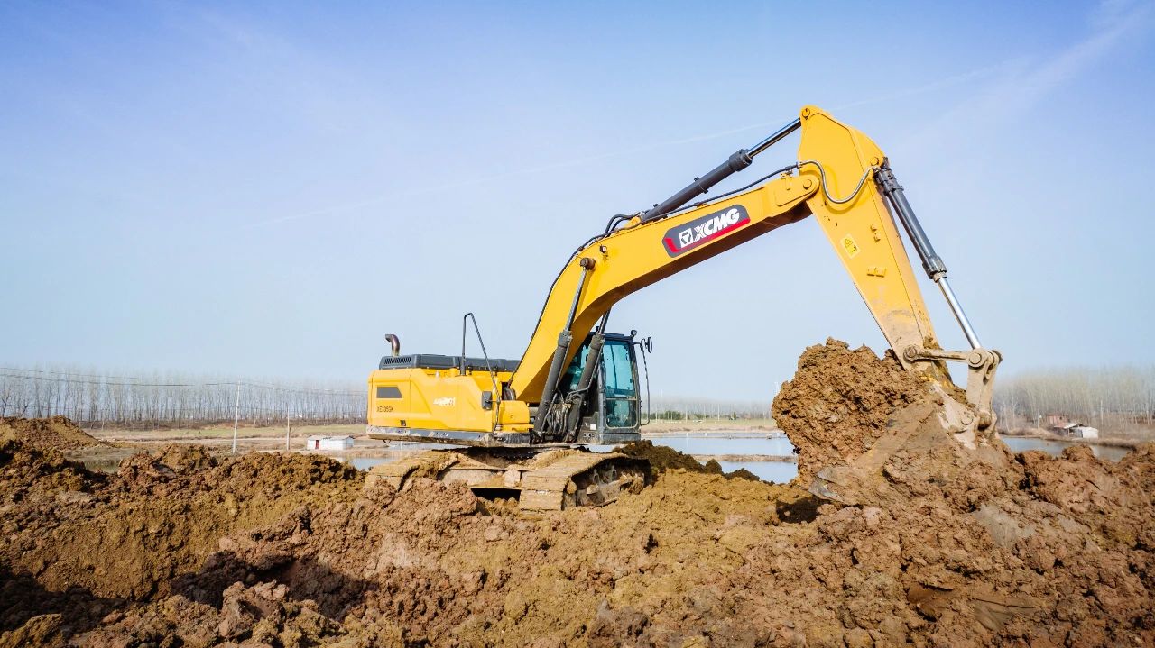 清理湖面的同時(shí)需要筑好河堤和路基,除了泥沙工況對(duì)挖掘機(jī)底盤(pán)帶來(lái)的挑戰(zhàn)之外,江南多雨天氣也給設(shè)備的整體性能提出了考驗(yàn)。