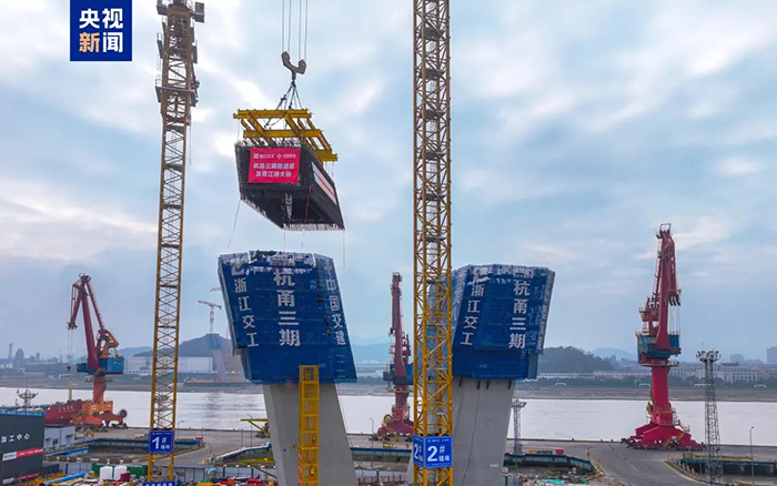 近日,在甬江特大橋施工現(xiàn)場,徐工超大塔XGT3000-120S揮舞鐵臂,67噸的鋼筋部品被穩(wěn)穩(wěn)吊起,精準安裝,徐工助力這一世界級跨江大橋建設提速加碼。