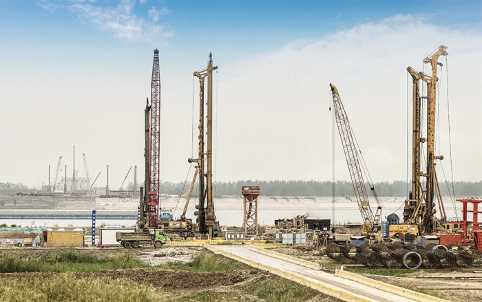 徐工XR550D、XR580HD等多臺(tái)徐工大噸位旋挖鉆機(jī)群憑借精湛的技術(shù)和卓越的性能,成功攻克了地層復(fù)雜、工期緊迫等多重難題,平均成孔周期68小時(shí),全面提速大橋樁基礎(chǔ)建設(shè)。