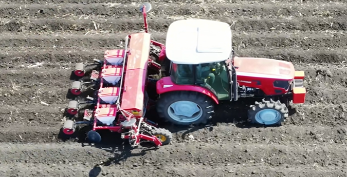 播種機作業(yè),四行播種,作業(yè)速度為8km/h。