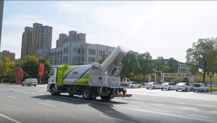 徐工XGH5181TDYXBEV 純電動多功能抑塵車在宿遷上海中路噴霧保濕,讓環(huán)境更美好。