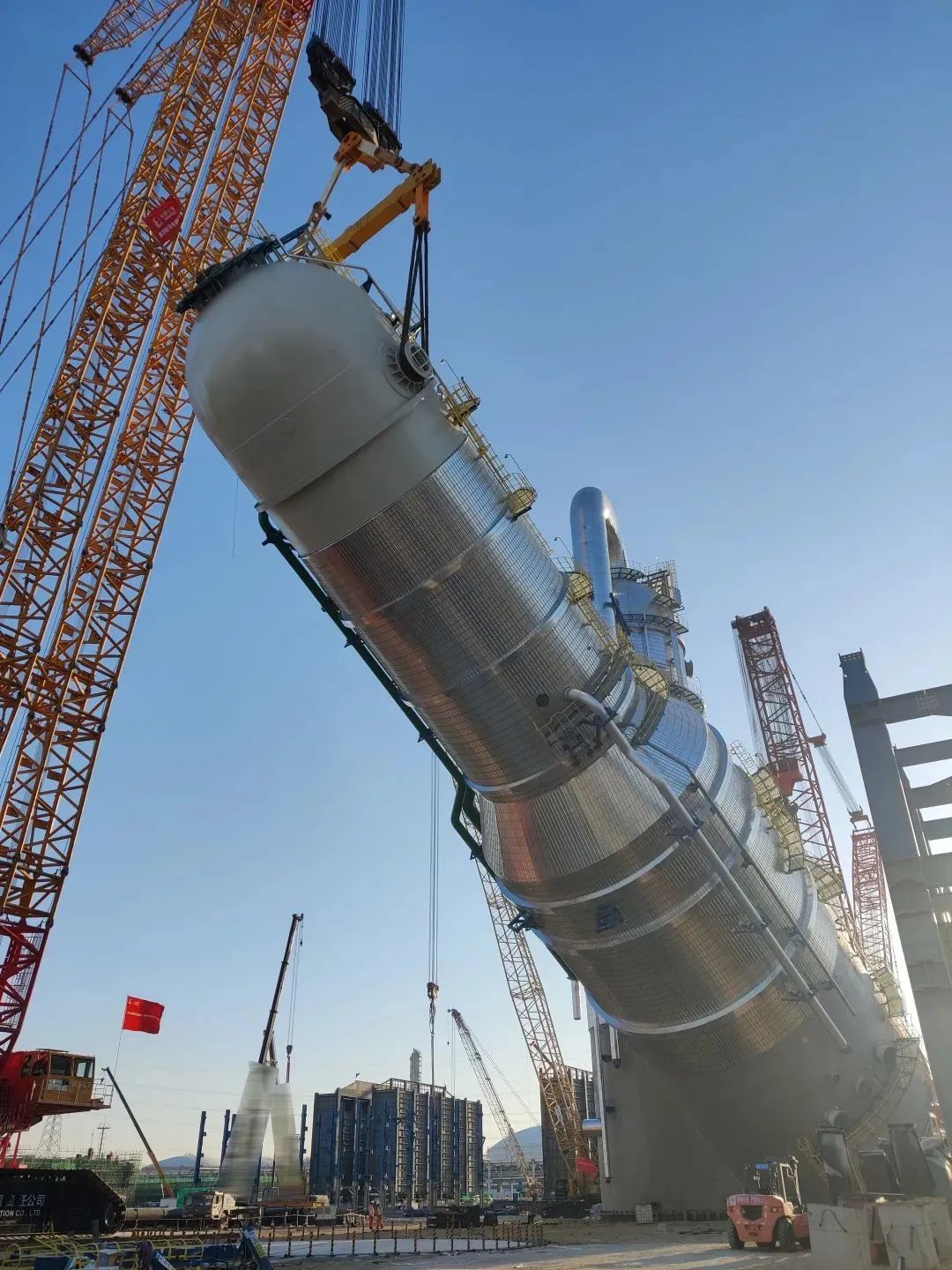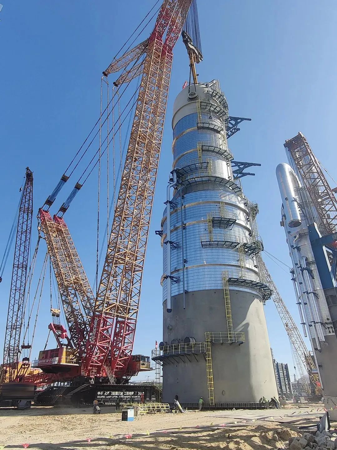 近日,徐工XGC88000(4000噸級)履帶起重機(jī)在我國華南某大型石化項(xiàng)目現(xiàn)場,成功完成重達(dá)2000噸的急冷水塔設(shè)備的吊裝任務(wù)。