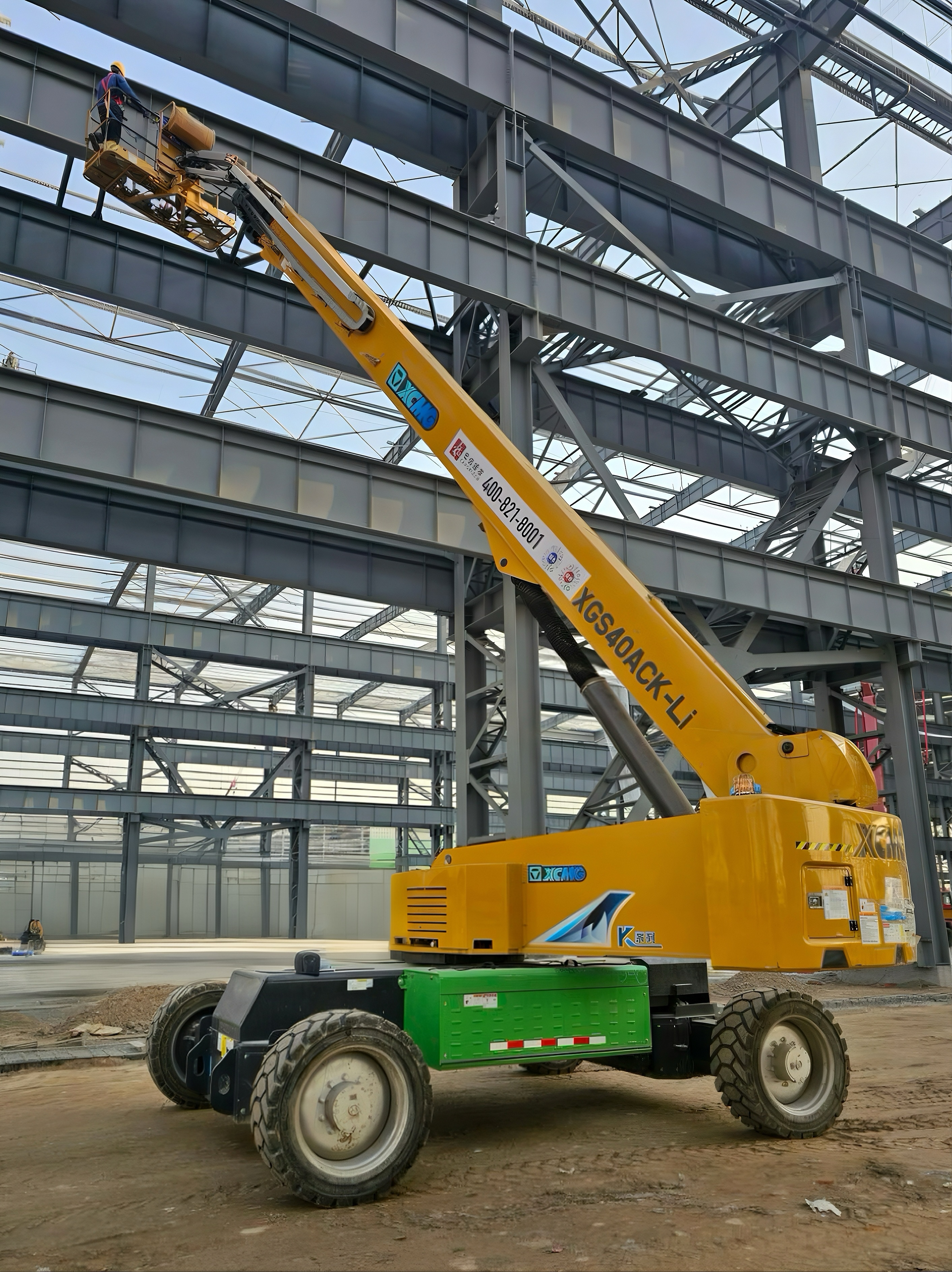 面對(duì)車間跨度大、作業(yè)面復(fù)雜等難題,兩臺(tái)產(chǎn)品展現(xiàn)超長(zhǎng)臂展,精準(zhǔn)覆蓋高空盲區(qū),攻克了廠房鋼結(jié)構(gòu)焊接、頂棚管線鋪設(shè)等高難度施工挑戰(zhàn);低半徑轉(zhuǎn)彎的特性使車輛在廠房通道靈活穿梭,智能安全系統(tǒng)全程“護(hù)航”,大幅提高了施工作業(yè)效率。現(xiàn)場(chǎng)作業(yè)人員紛紛點(diǎn)贊:“電動(dòng)化+高米數(shù)的組合,完美匹配智能化車間綠色、高效的施工需求!”