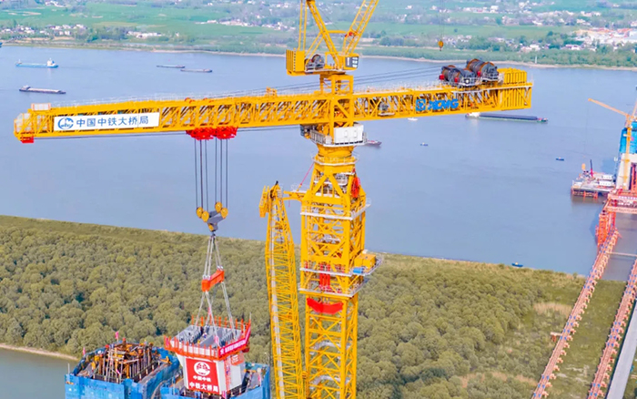 超級裝備賦能超級工程。4月10日,巢馬城際鐵路馬鞍山公鐵兩用長江大橋項目建設(shè)迎來重要節(jié)點,全球最大塔機(jī)徐工XGT15000-600S順利完成首節(jié)段鋼塔吊裝,大橋進(jìn)入到上塔柱的施工階段。