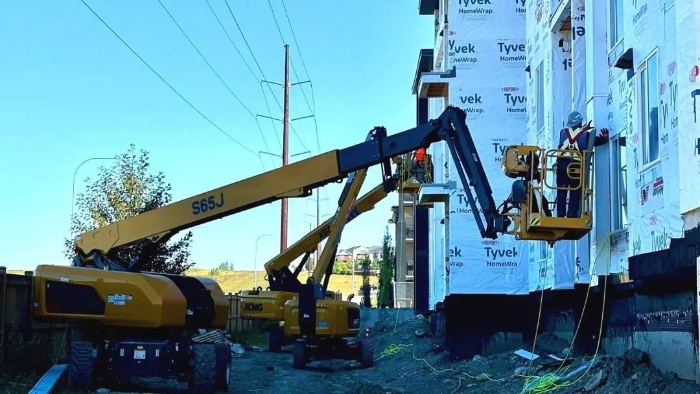坐標(biāo)北美,多臺徐工高空作業(yè)平臺、伸縮臂叉裝車穿梭于一處大型住房建設(shè)項(xiàng)目上,成為施工現(xiàn)場一道亮眼的風(fēng)景線。