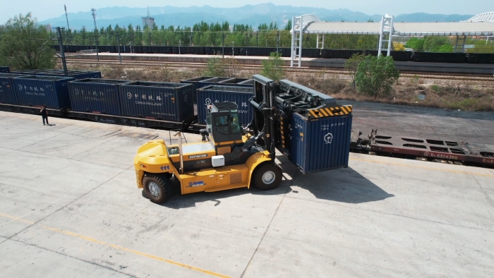 該設(shè)備搭載可旋轉(zhuǎn)式集裝箱專用吊具,操作安全性高,能夠?qū)崿F(xiàn)迅速移位、精準(zhǔn)裝卸,覆蓋鐵路20英尺干散貨箱、敞頂箱等各種箱型。既能完美避開(kāi)接觸網(wǎng)安全距離,又能解決多層集裝箱存取難題,真正實(shí)現(xiàn)“一機(jī)多用”。