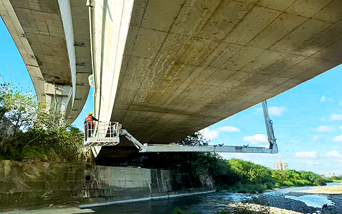 在檢測現(xiàn)場,徐工 QJZ18 大顯身手。其最大跨寬 4.4 米、最大跨高 5.6 米,水平作業(yè)幅度達 18 米,輕松跨越復雜橋體,快速抵達指定檢測點。施工單位現(xiàn)場負責人感慨:“以前檢測這種大橋,調整設備位置耗時久,效率低,現(xiàn)在有了徐工 QJZ18,效率大幅提升。” 其 270kg 承載的作業(yè)平臺,讓檢測人員能便捷攜帶儀器,細致檢測橋梁各處。