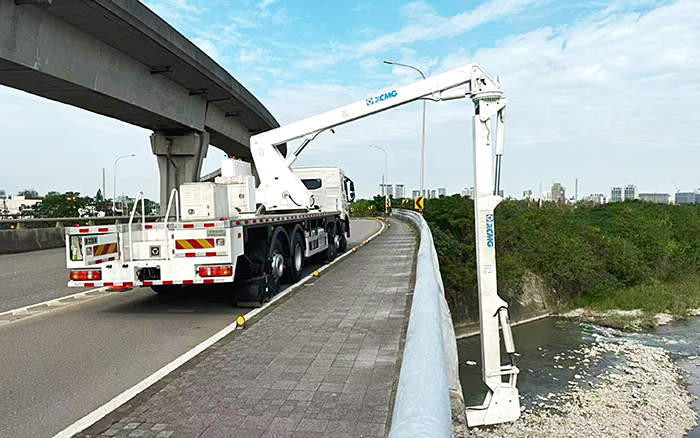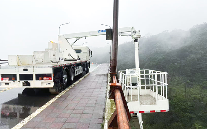 徐工 QJZ18 在全行業(yè)首創(chuàng)工作平臺第三回轉功能,該功能使作業(yè)平臺靈活靠近檢測部位。施工人員興奮表示:“這功能太實用!以往遇到這類復雜橋型就頭疼,如今檢測輕松多了?!?同時,車輛作業(yè)占道距離小,施工時道路車輛正常通行,極大降低對交通的影響。