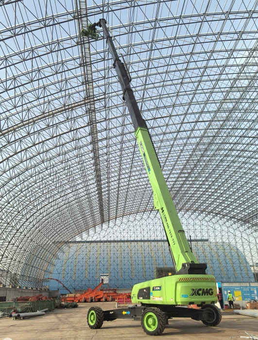 近日,在河南省平頂山市發(fā)電廠擴(kuò)建項(xiàng)目現(xiàn)場(chǎng),一臺(tái)“青山綠”涂裝的XGS52ACK-Li純電直臂式高空作業(yè)平臺(tái)格外亮眼,這是該車在2024年上海寶馬展全球首發(fā)后首次實(shí)戰(zhàn)應(yīng)用。