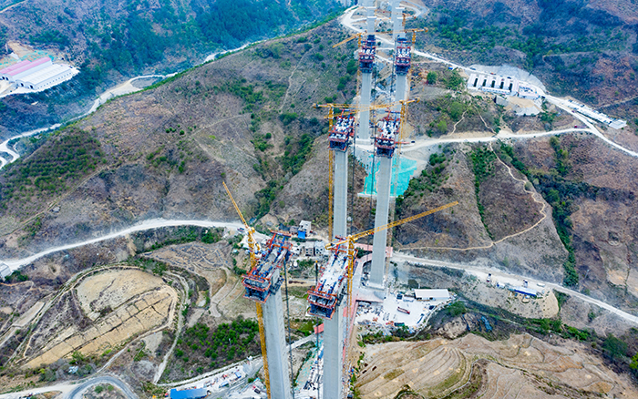 蒼翠延綿的群山深處,一根根百米高墩拔地而起,自東向西整齊排列,二十余臺(tái)徐工S1系列塔機(jī)、施工升降機(jī)與青山比肩,正有條不紊地吊裝,助力雅長特大橋建設(shè)加速。