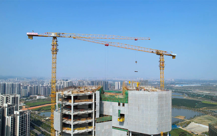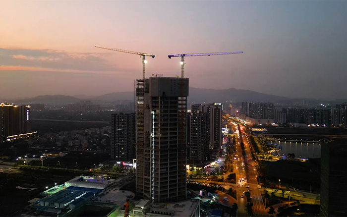 與高樓肩并肩,讓夢想都實現(xiàn)。3臺XGT6515E-10S塔機(jī)在施工現(xiàn)場運轉(zhuǎn)自如,相互配合,合力保障項目施工建設(shè)。