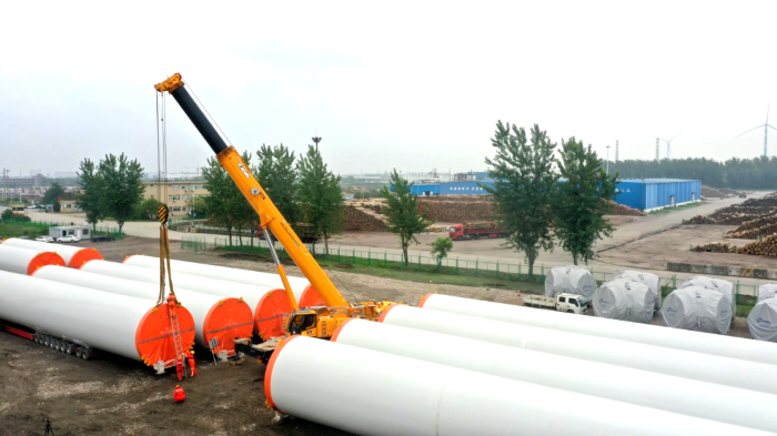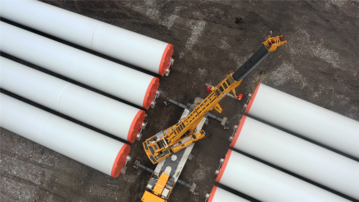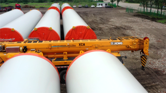 在繁忙的港口,長(zhǎng)40米、重100噸的風(fēng)力發(fā)電塔筒擺放整齊,等待著一次關(guān)鍵的騰挪,吊裝空間局促——塔筒擺放距離較近,蕩距空間嚴(yán)重受限,這是對(duì)起重機(jī)性能與操控的極致考驗(yàn)。徐工G2代起重機(jī)XCA200G8-1從容入場(chǎng),以實(shí)力宣告:空間,絕非限制。