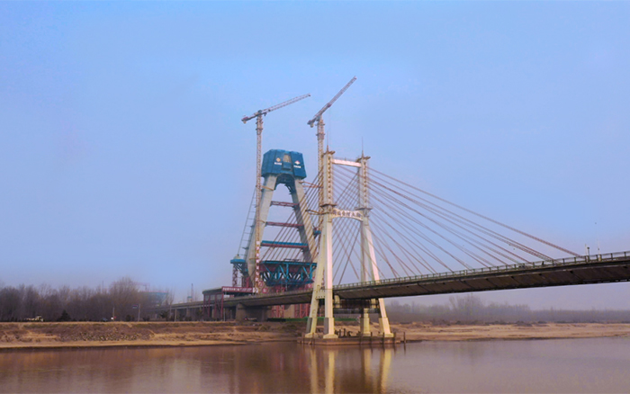 該新建黃河大橋長約2.5公里,與老橋并行建設(shè),為公軌分層合建橋梁,上層為雙向八車道公路,下層為雙線軌道交通。這是黃河流域目前在建跨徑最大、鋼橋總長最長的公軌分層兩用合建斜拉橋,也是黃河上第一座不等跨并橋建設(shè)工程,工程總用鋼量達七萬噸。