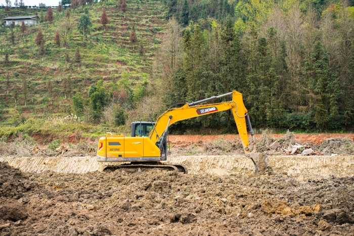 “水田黏土多、修坡量大,徐工設(shè)備的施工效率顯著?!必?fù)責(zé)人介紹稱,徐工發(fā)動機(jī)功率大,干活有勁,而且平地性能好,刷坡、平地的速度比同噸級產(chǎn)品快10%以上。