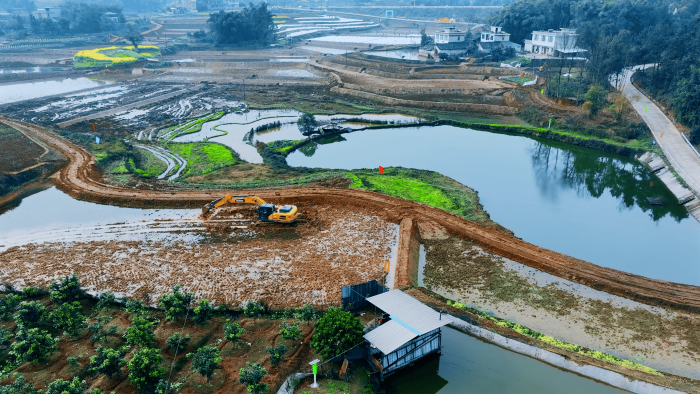 繼續(xù)向東,這里是萬里長江第一城——宜賓,在宜賓江安縣陽春鎮(zhèn),5000畝高標(biāo)準(zhǔn)農(nóng)田建設(shè)進(jìn)入尾聲,項(xiàng)目高峰期投入30余臺徐工挖掘機(jī)。