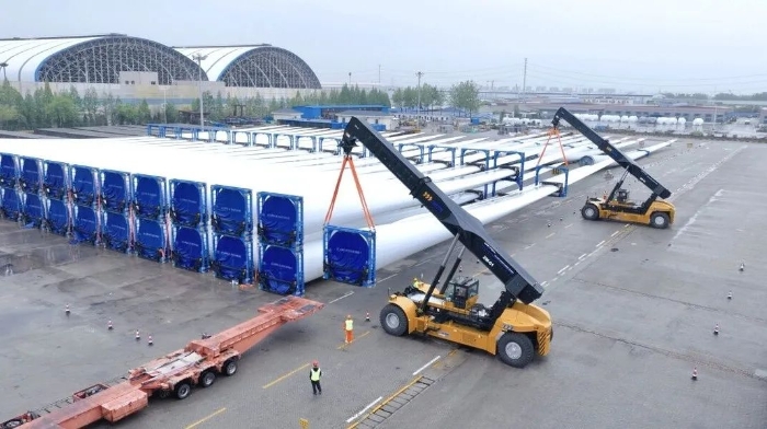 目前,XCS70KS風(fēng)電正面吊已在揚(yáng)州港順利完成多次大型風(fēng)電部件裝卸任務(wù),其穩(wěn)定高效的性能成為長三角地區(qū)智慧口岸建設(shè)的標(biāo)桿力作。該裝備的成功應(yīng)用,不僅全面提升了港口運(yùn)營質(zhì)效,也為全國港口的智能化升級提供了可復(fù)制、可推廣的徐工-揚(yáng)州港樣板。