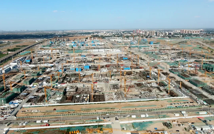在雄安新區(qū)啟動區(qū)金融島核心地帶,XGT7022等十余臺徐工塔吊如同鋼鐵巨人般矗立在建設(shè)現(xiàn)場,與明珠湖對岸的國貿(mào)中心建筑群遙相呼應(yīng),它們正以毫米級精度吊裝著總重量超萬噸的鋼結(jié)構(gòu)模塊。