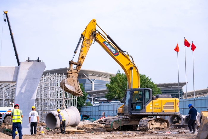 ?在航站樓基坑開挖階段,徐工大挖憑借澎湃動(dòng)力與強(qiáng)勁輸出,成為土方作業(yè)的中流砥柱;