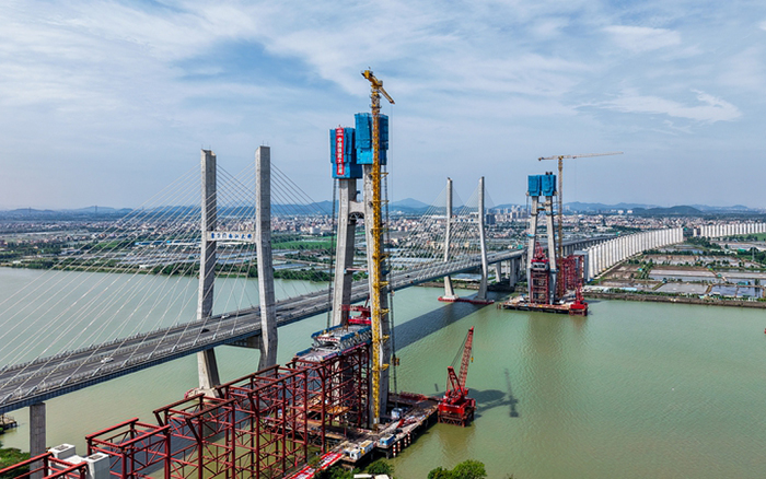 在深江鐵路重難點(diǎn)工程——跨磨刀門(mén)水道主橋施工現(xiàn)場(chǎng),兩臺(tái)徐工XGT7527A-18S正穩(wěn)定吊裝,橫梁與對(duì)應(yīng)部位的塔柱同步施工,后續(xù)4臺(tái)施工升降機(jī)也將陸續(xù)入駐項(xiàng)目,共同助力主橋中、上塔柱爬升施工。
