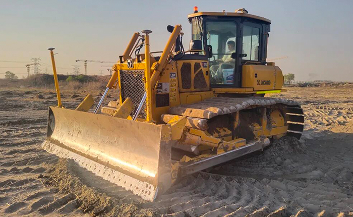 在路基填方平整作業(yè)中,徐工推土機(jī)鏟刀引導(dǎo)系統(tǒng)以雙天線GNSS技術(shù)實(shí)現(xiàn)厘米級鏟刀高程精準(zhǔn)定位,結(jié)合定高定坡一鍵設(shè)定功能,高效完成分層填筑路基土方、在坡度超過1:5的斜坡或溝渠區(qū)域,配合開挖臺階、回填土方,并鋪設(shè)土工格柵等任務(wù)。即開即用的高性價比優(yōu)勢,大幅降低測量人力與燃油消耗,推動施工效率與質(zhì)量雙提升。