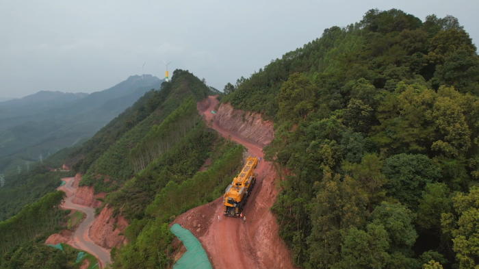 在廣西崇山峻嶺中,徐工XCA4000輪式起重機憑借“6+2雙動力”驅(qū)動系統(tǒng),以402.5噸整車重量完成重載轉(zhuǎn)場,在陡峭狹窄的山地中穩(wěn)健行進。
