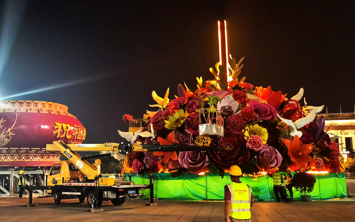 花籃中,百花綻放,盛世氣象萬(wàn)千。這一刻,大國(guó)重器托起的,不只是節(jié)日的喜慶,更是國(guó)泰民安的厚重底氣。