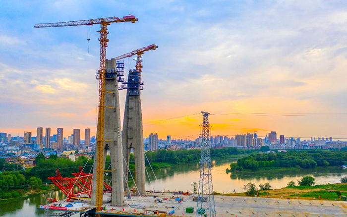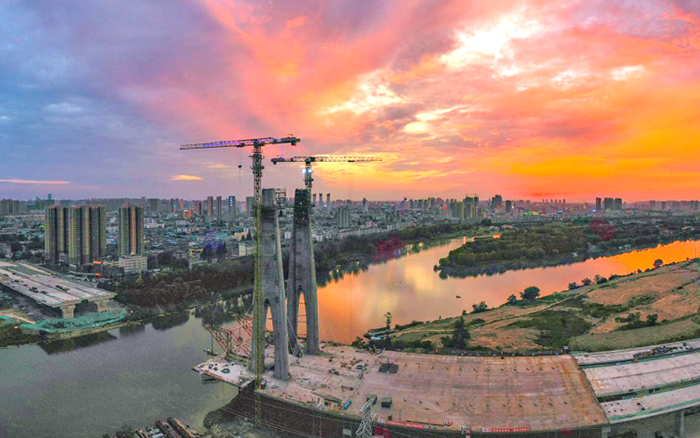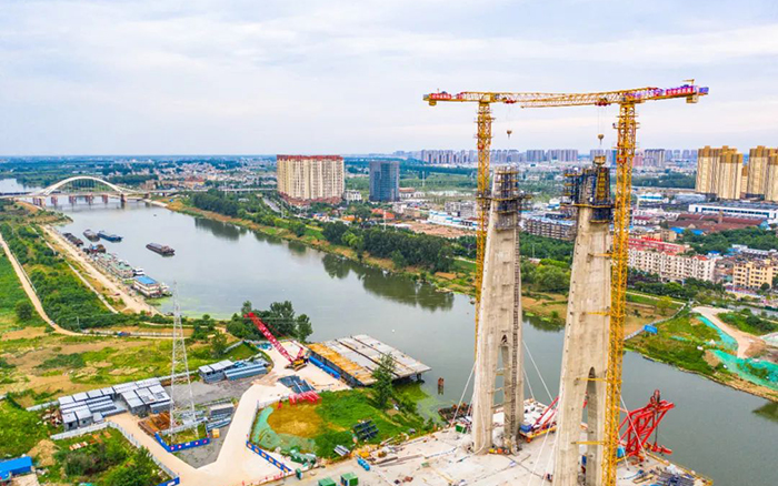 此次參建的項目是阜裕大橋項目,主要承接橋梁主塔的吊裝任務。阜裕大橋全長1735米,橋梁長1127米,主橋采用獨塔斜拉橋結(jié)構(gòu),主塔高95.6米,主橋斷面為60米超寬幅鋼箱梁,是國內(nèi)市政最寬鋼箱梁橋,建成后將成為阜陽的又一個“新地標”。