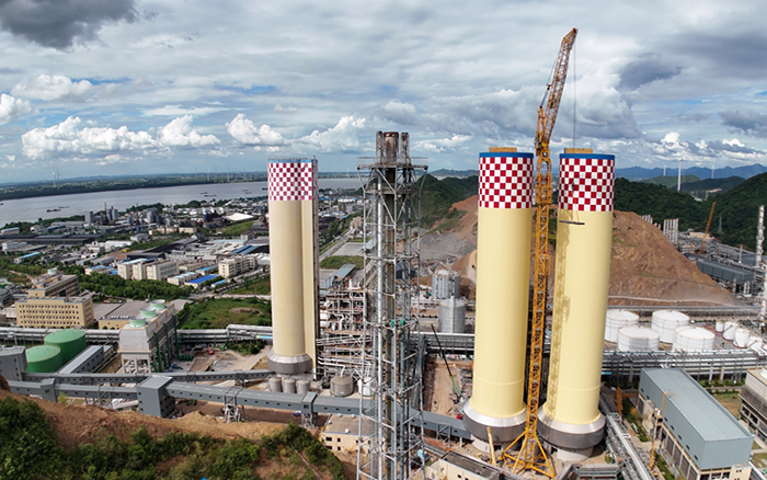 作業(yè)過程中,徐工 XGL3300-220S先將圓形橫梁鋼構(gòu)提升至130多米高度,越過塔筒,在塔頂區(qū)域通過多次微幅旋轉(zhuǎn)調(diào)整,最終穩(wěn)穩(wěn)下沉,與造粒塔上部預(yù)埋支座精準(zhǔn)對接。
