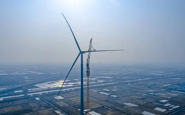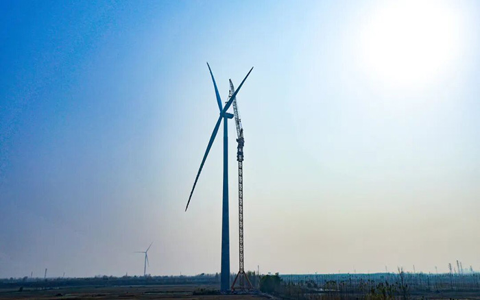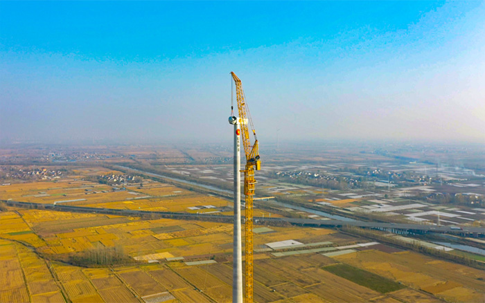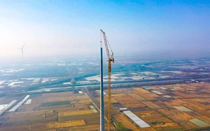 在山東魚臺風(fēng)電項(xiàng)目建設(shè)現(xiàn)場