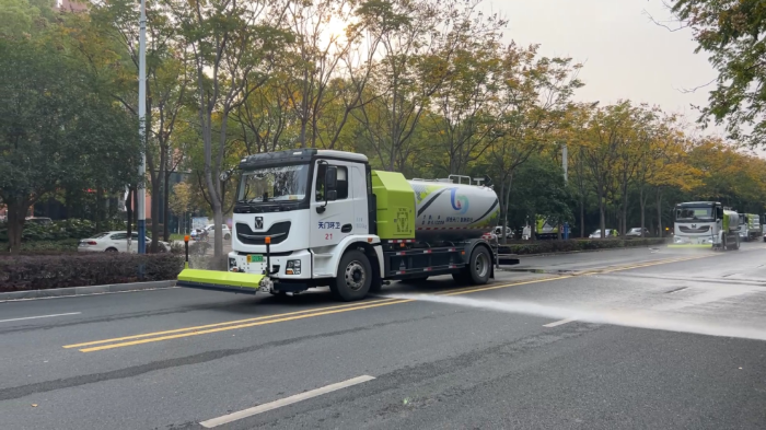 清晨的湖北天門陸羽大道上,兩臺(tái)徐工新能源環(huán)衛(wèi)裝備開(kāi)啟高效作業(yè)——XGH5181TXSXBEV純電動(dòng)洗掃車與DXA5181GQXXBEV純電動(dòng)高壓清洗車組成“黃金搭檔”,以零排放、超靜音的綠色科技,為這條承載千年茶文化底蘊(yùn)的城市動(dòng)脈注入清新活力。