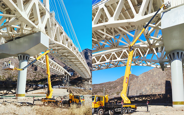 徐工 GKH65 高空作業(yè)車憑借強(qiáng)悍跨障能力,在這座關(guān)鍵橋梁的側(cè)面管路安裝施工中,盡顯硬核實力,為橋梁運(yùn)維領(lǐng)域樹立全新技術(shù)標(biāo)桿。