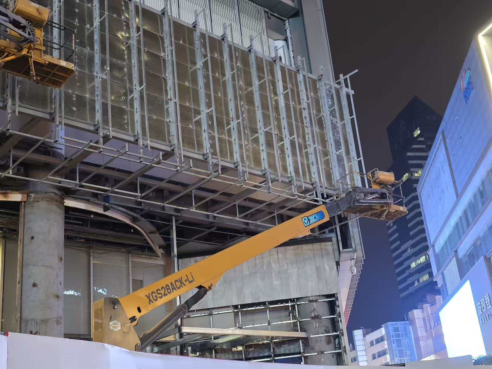XGS28ACK-Li擁有28.8m最大作業(yè)高度,輕松覆蓋新百廣場高層外立面的幕墻安裝、鋼結(jié)構(gòu)拼接作業(yè)面;460kg的大承載量支持雙人協(xié)同施工,搭配靈活的臂架操作,大幅提升外立面改造的施工效率。更關(guān)鍵的是,設(shè)備采用鋰電驅(qū)動,實(shí)現(xiàn)零尾氣排放、低噪音作業(yè),即使在商圈白天運(yùn)營時(shí)段施工,也不會對周邊商業(yè)活動造成干擾,完美適配核心商圈的施工管控標(biāo)準(zhǔn)。