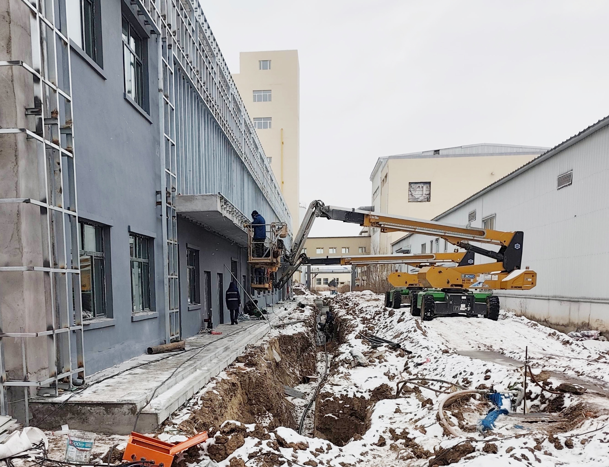 北大荒綠源冷鏈管理中心作為當?shù)刂攸c冷鏈基建項目,施工工期緊、標準高。徐工高空作業(yè)平臺以“冰雪天不停工”的可靠表現(xiàn),為項目外立面施工提速,也展現(xiàn)了徐工工程機械在嚴寒工況下的硬核適配能力。