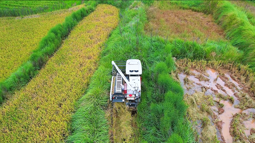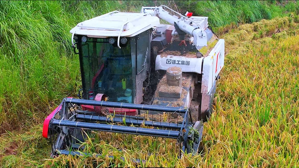 這車特別適合我們丘陵地區(qū),爬坡上坎完全不在話下,因?yàn)檫@臺機(jī)器重心設(shè)計合理,離地間隙也高,防陷能力強(qiáng),爛泥田通過性也很好。割臺設(shè)計得短,下坡也不容易吃土,用著很踏實(shí)。