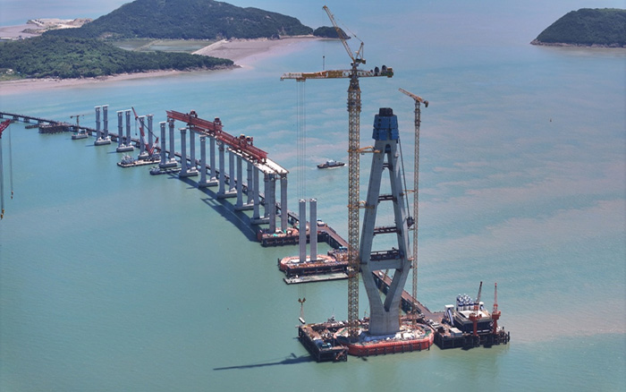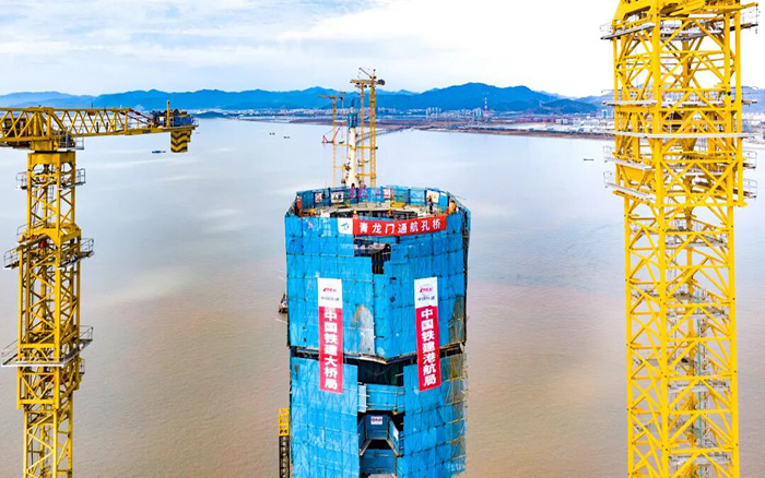 在青龍門大橋建設(shè)中,主塔毫米級精準(zhǔn)控制與海上超高結(jié)構(gòu)吊裝成為關(guān)鍵難題。